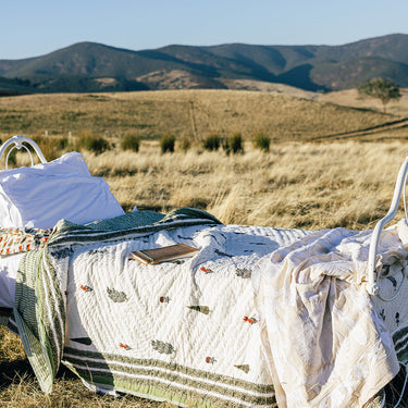 Our new suzanis are hand embroidered in chain stitch from Barmer, India.  We love the fact that we are supporting women who are using traditional techniques handed down through the ages to make gorgeous textiles to treasure and appreciate for our homes.