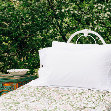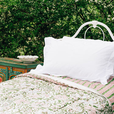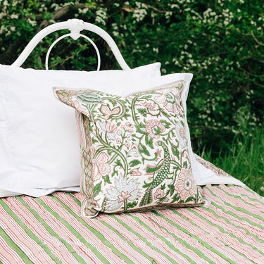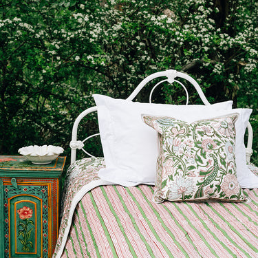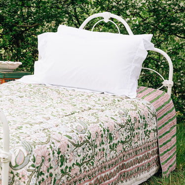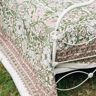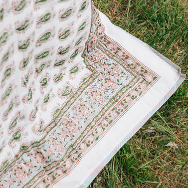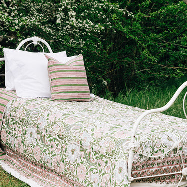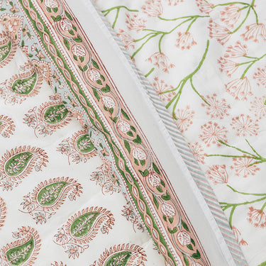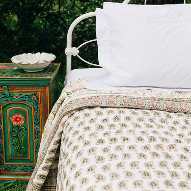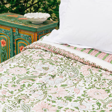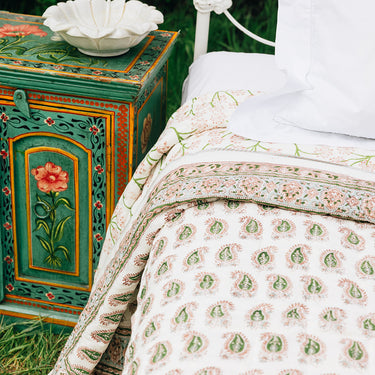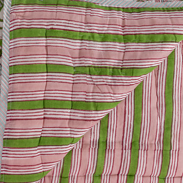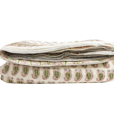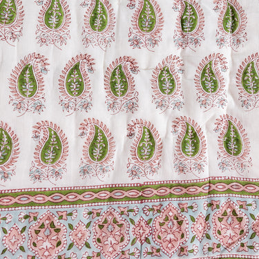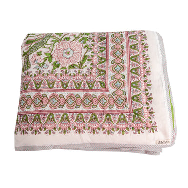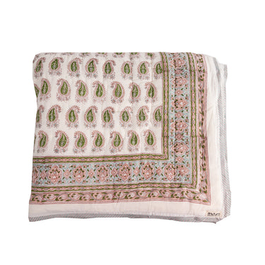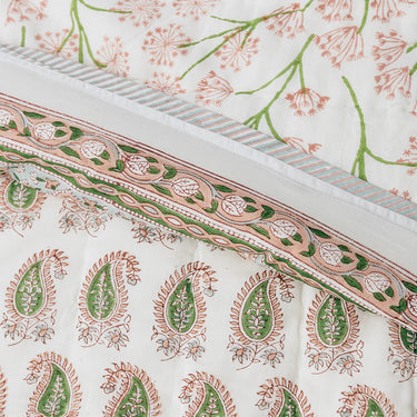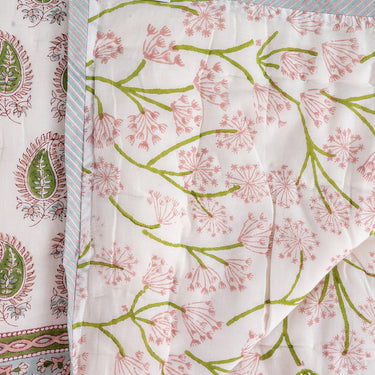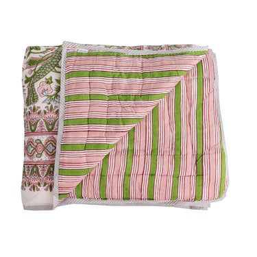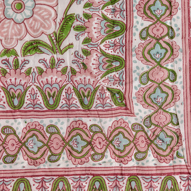 Pink & Green Block Printed Cotton Quilt