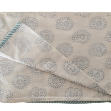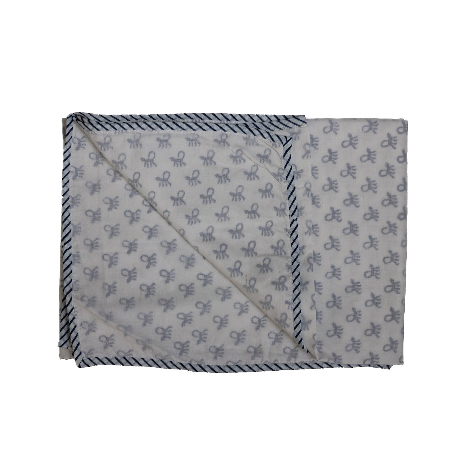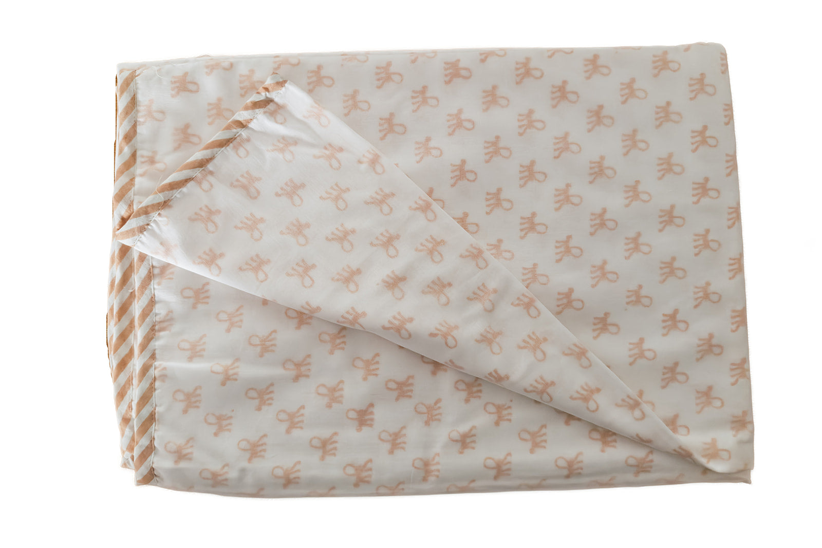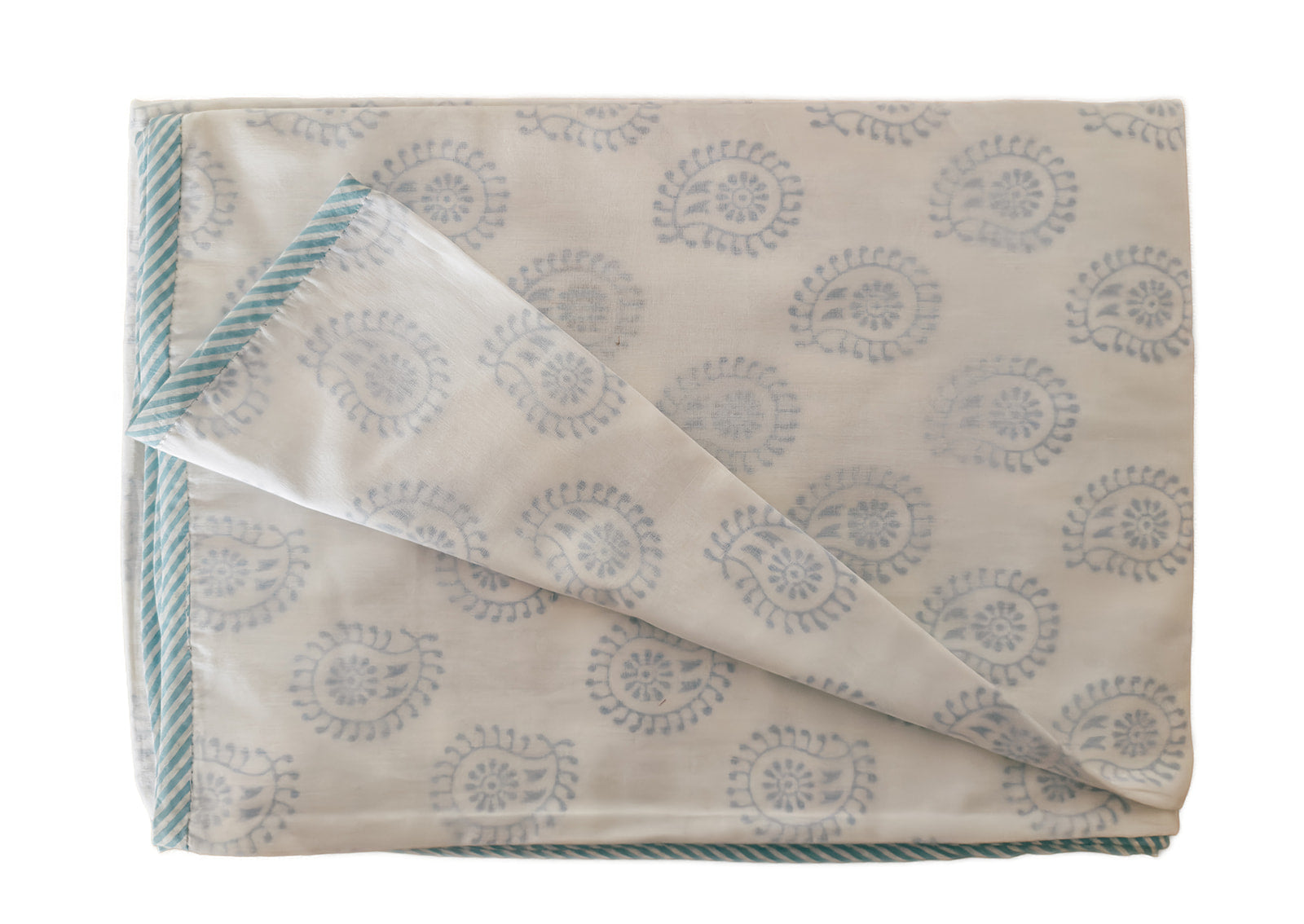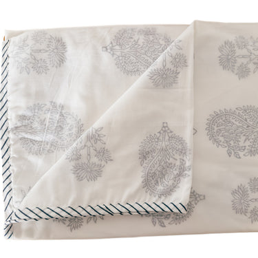 These traditional Indian summer blankets or wraps for babies are comprised of three sheets of mulmul, an airy, ultra-breathable cotton fabric once exclusive to royalty. Three layers are stitched together, not quilted. Natural cotton keeps baby cooler in summer and warmer in winter, and the subtle tones and prints blend effortlessly into any nursery decor.