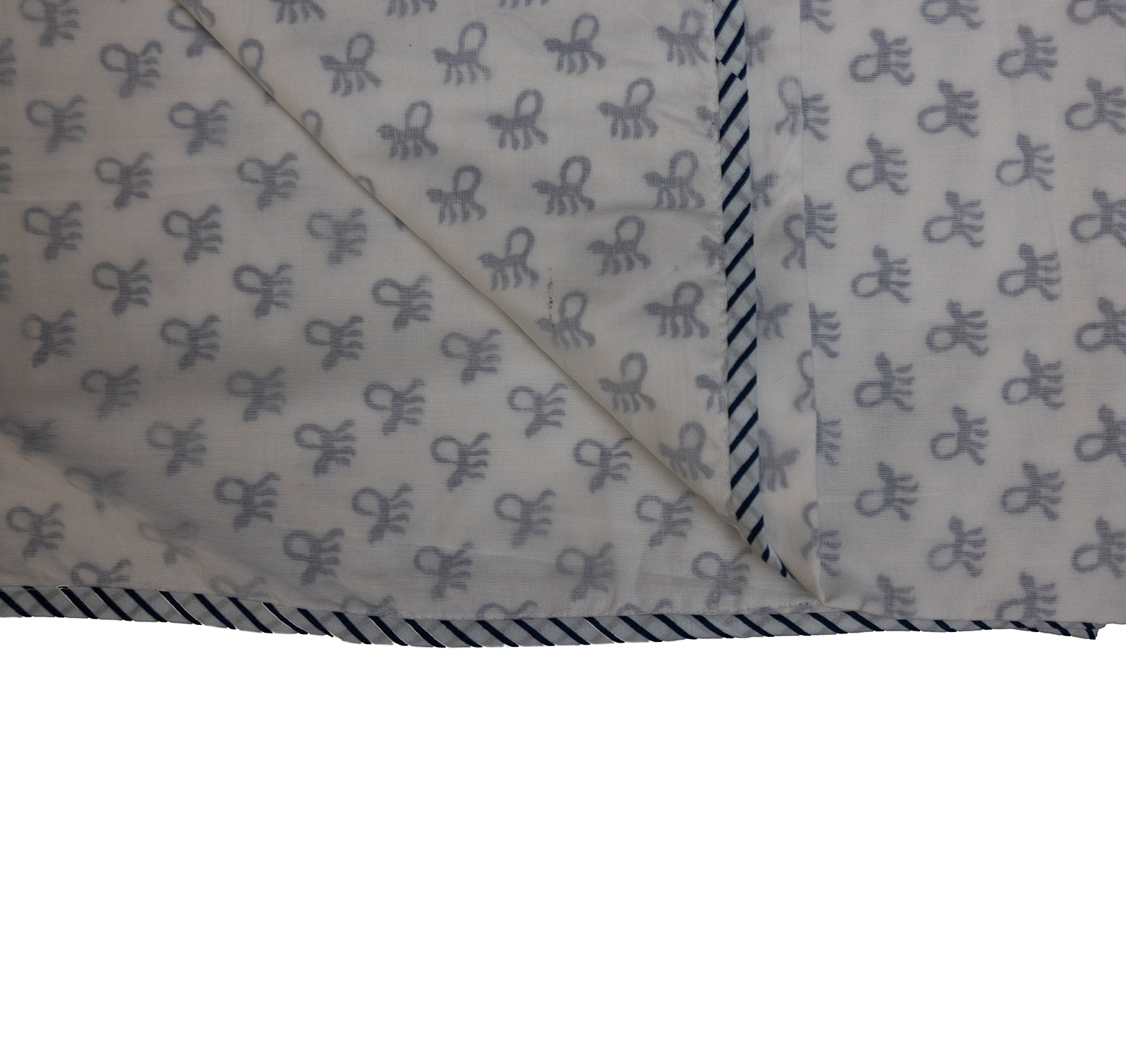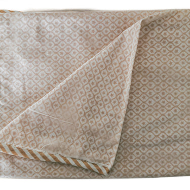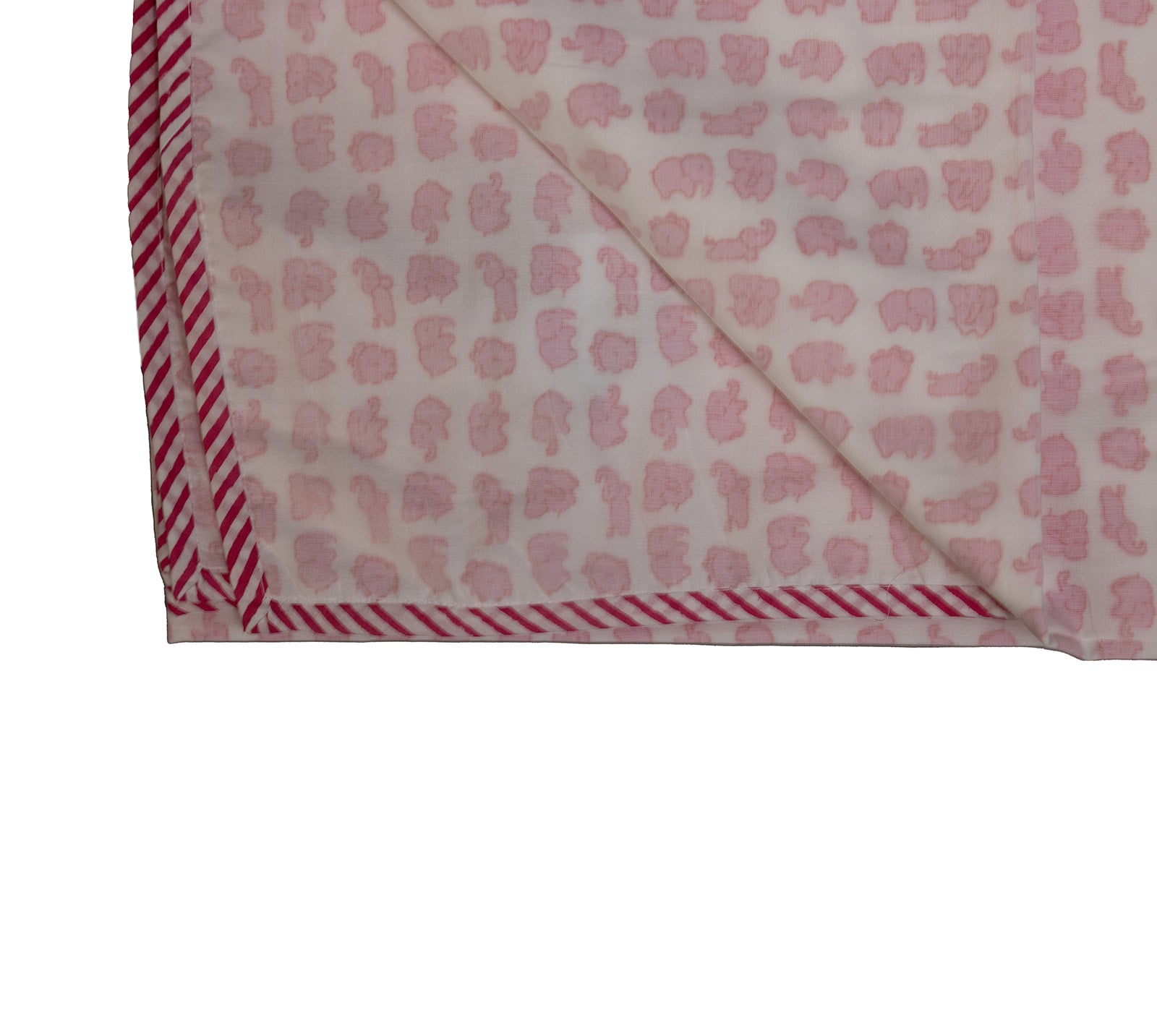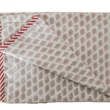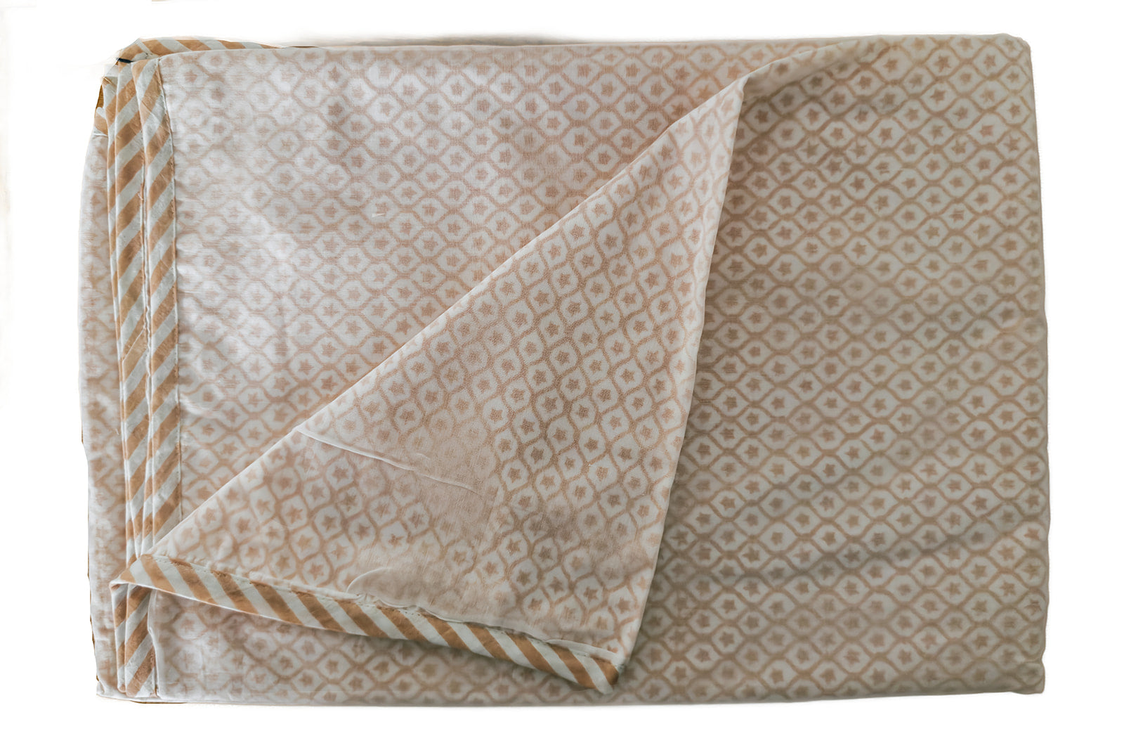These traditional Indian summer blankets or wraps for babies are comprised of three sheets of mulmul, an airy, ultra-breathable cotton fabric once exclusive to royalty. Three layers are stitched together, not quilted. Natural cotton keeps baby cooler in summer and warmer in winter, and the subtle tones and prints blend effortlessly into any nursery decor.