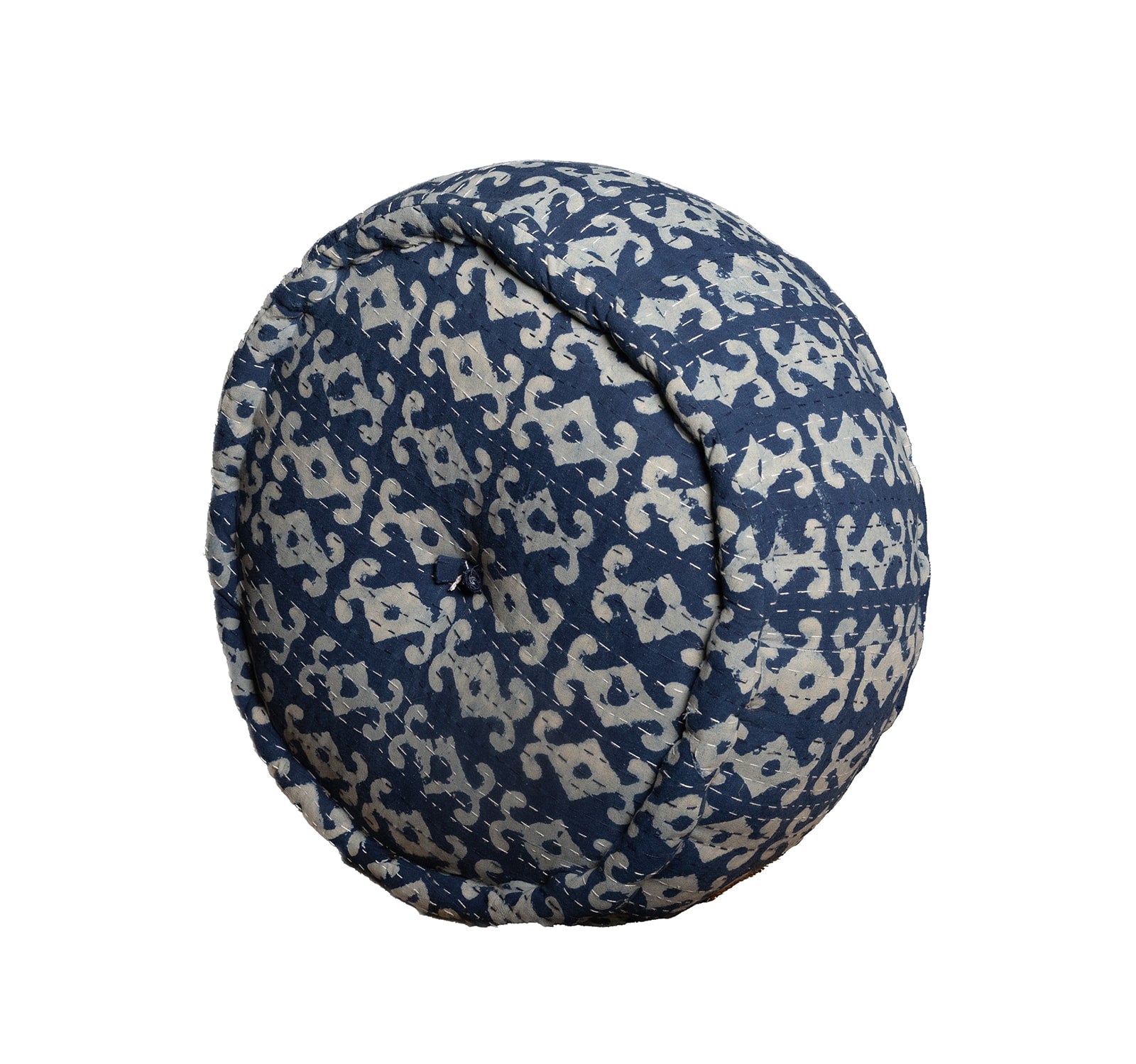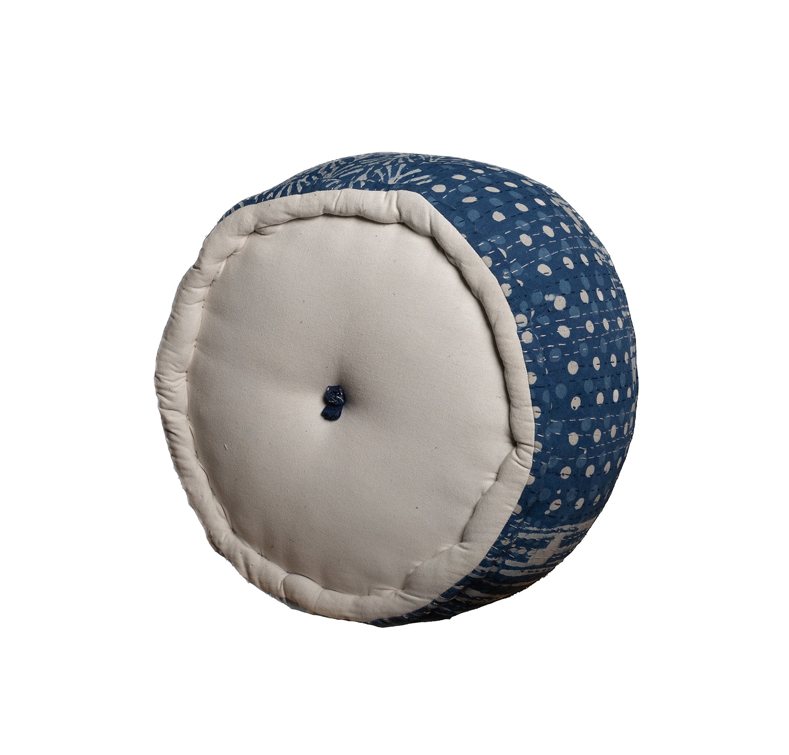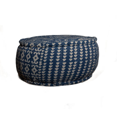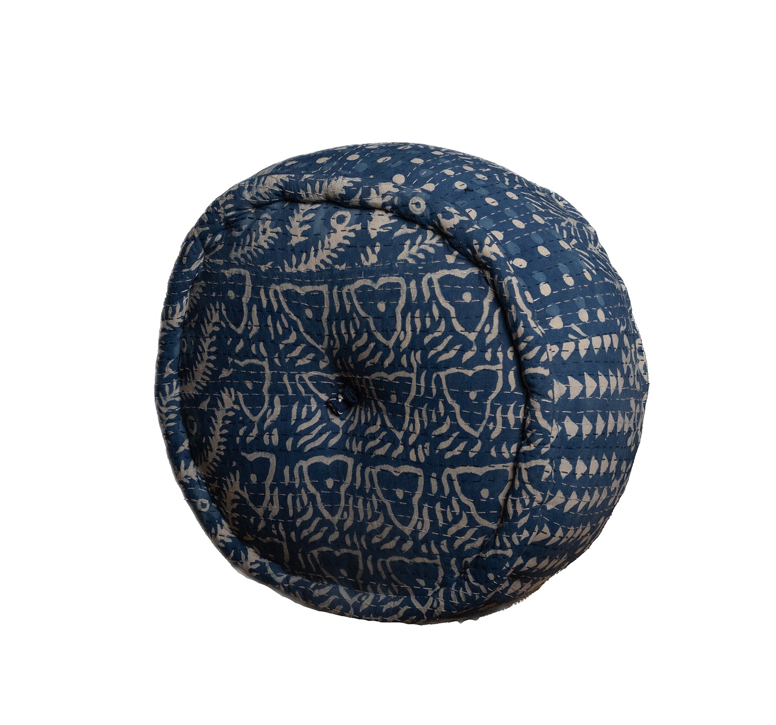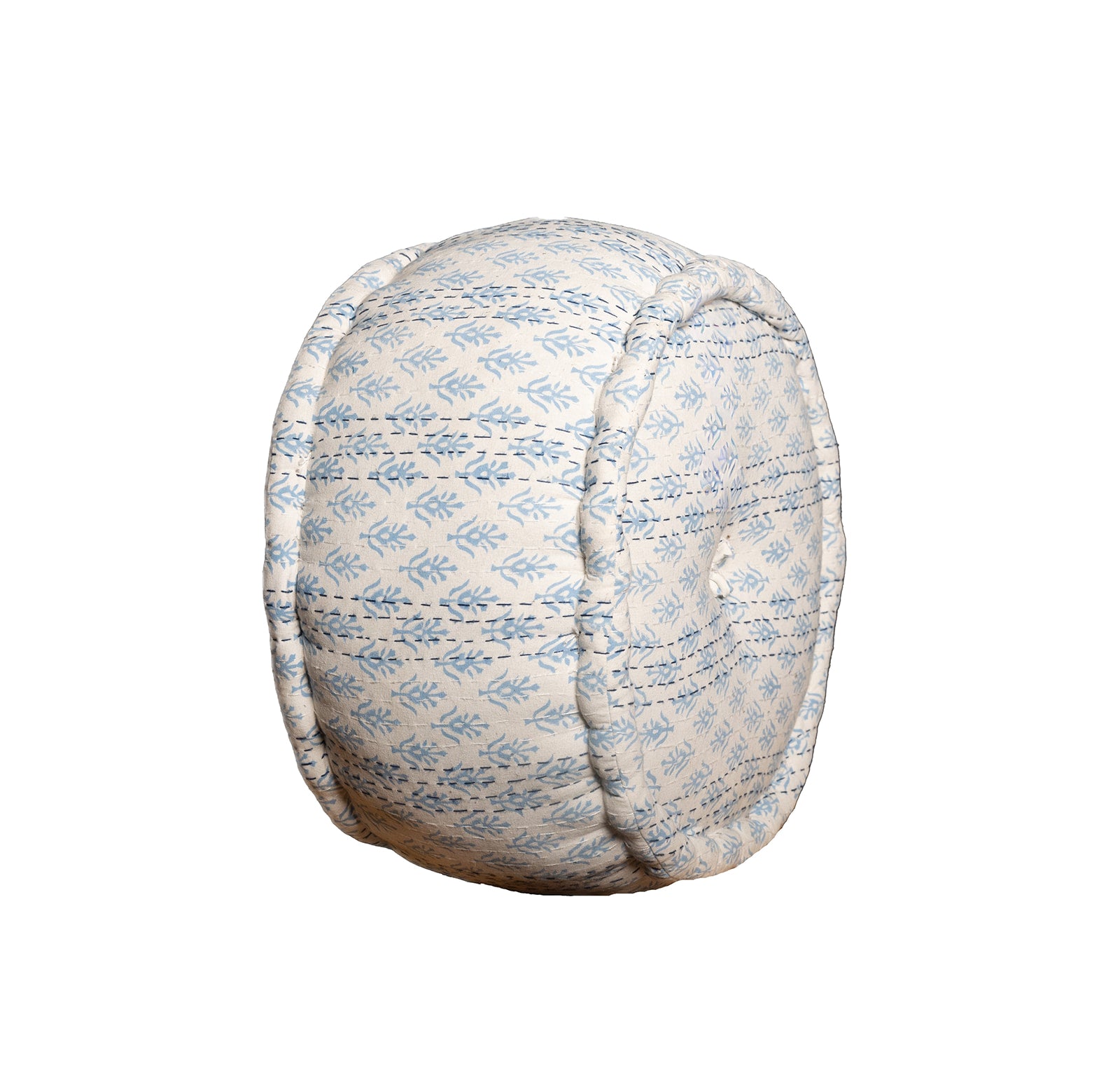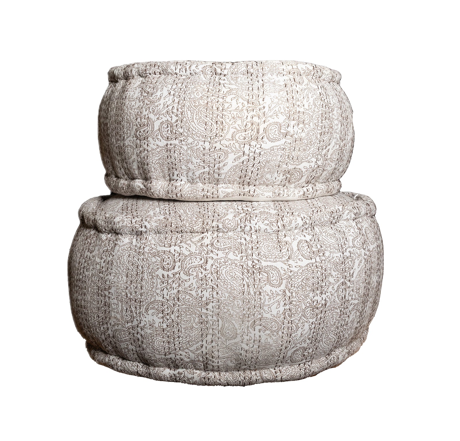 Covered in 100% cotton, screen printed or hand block printed in rich, characterful patterns, each piece is finished with beautiful kantha stitching, adding texture, detail and a subtle handcrafted charm. The gentle quilting effect enhances both durability and visual interest, giving every pouffe a warm, artisanal feel.