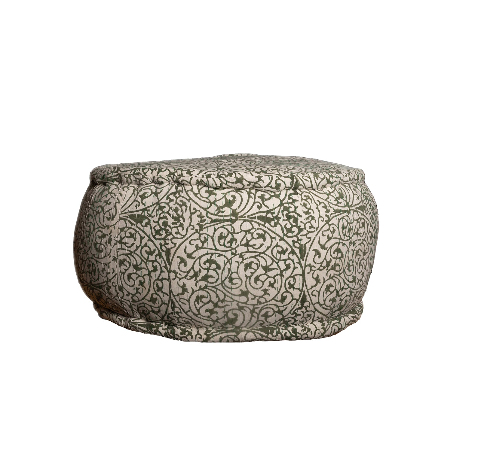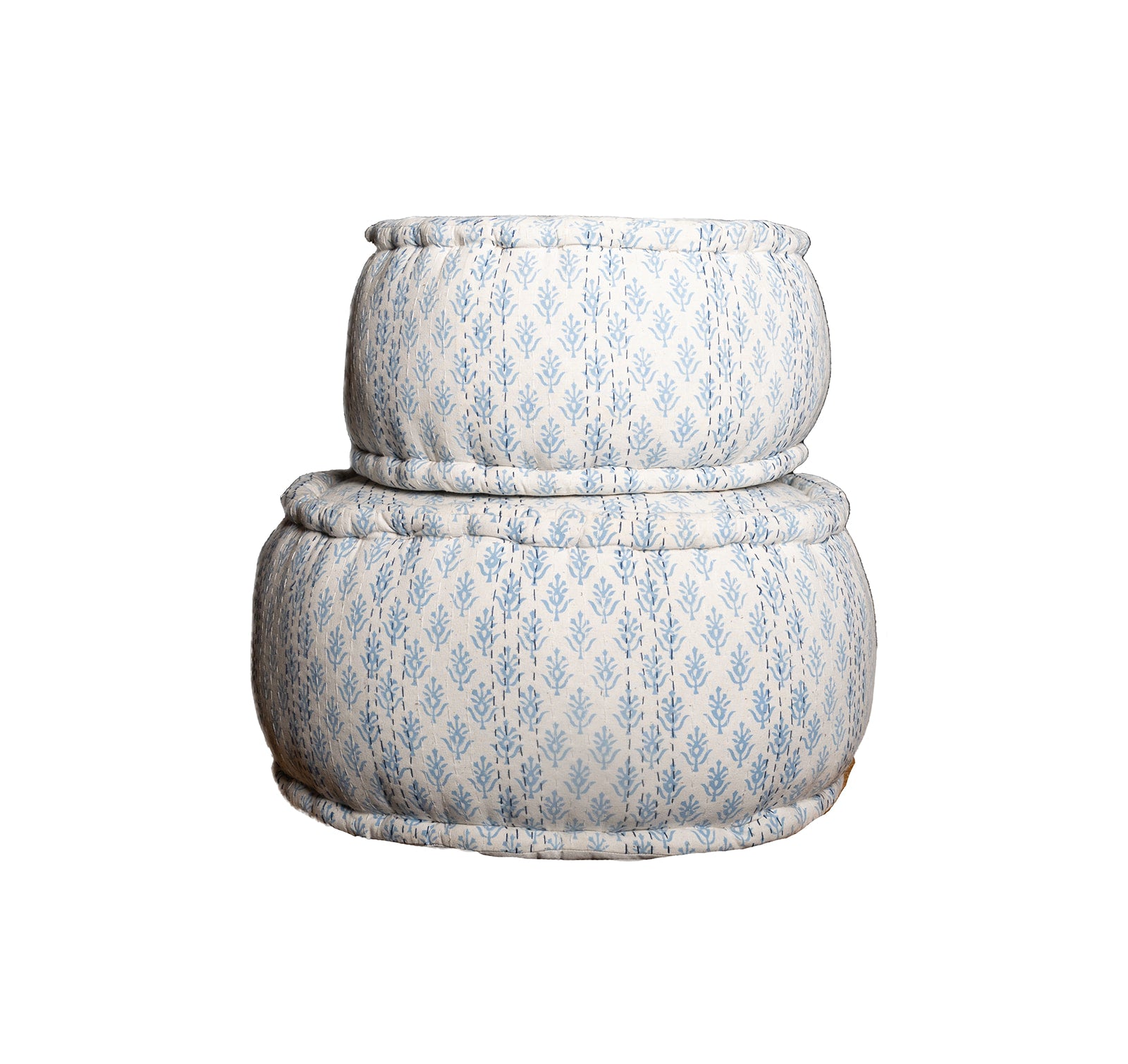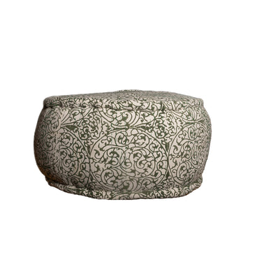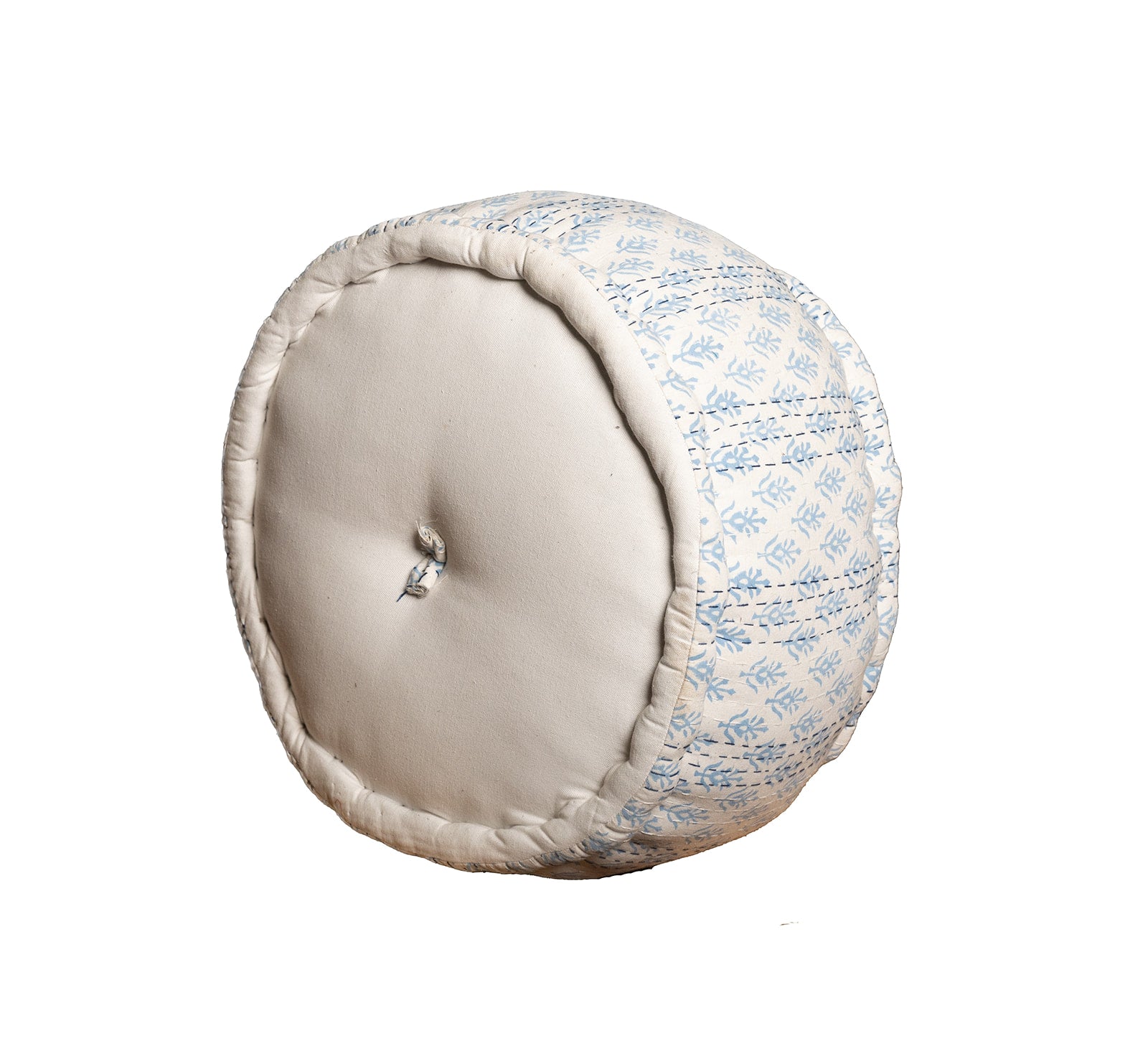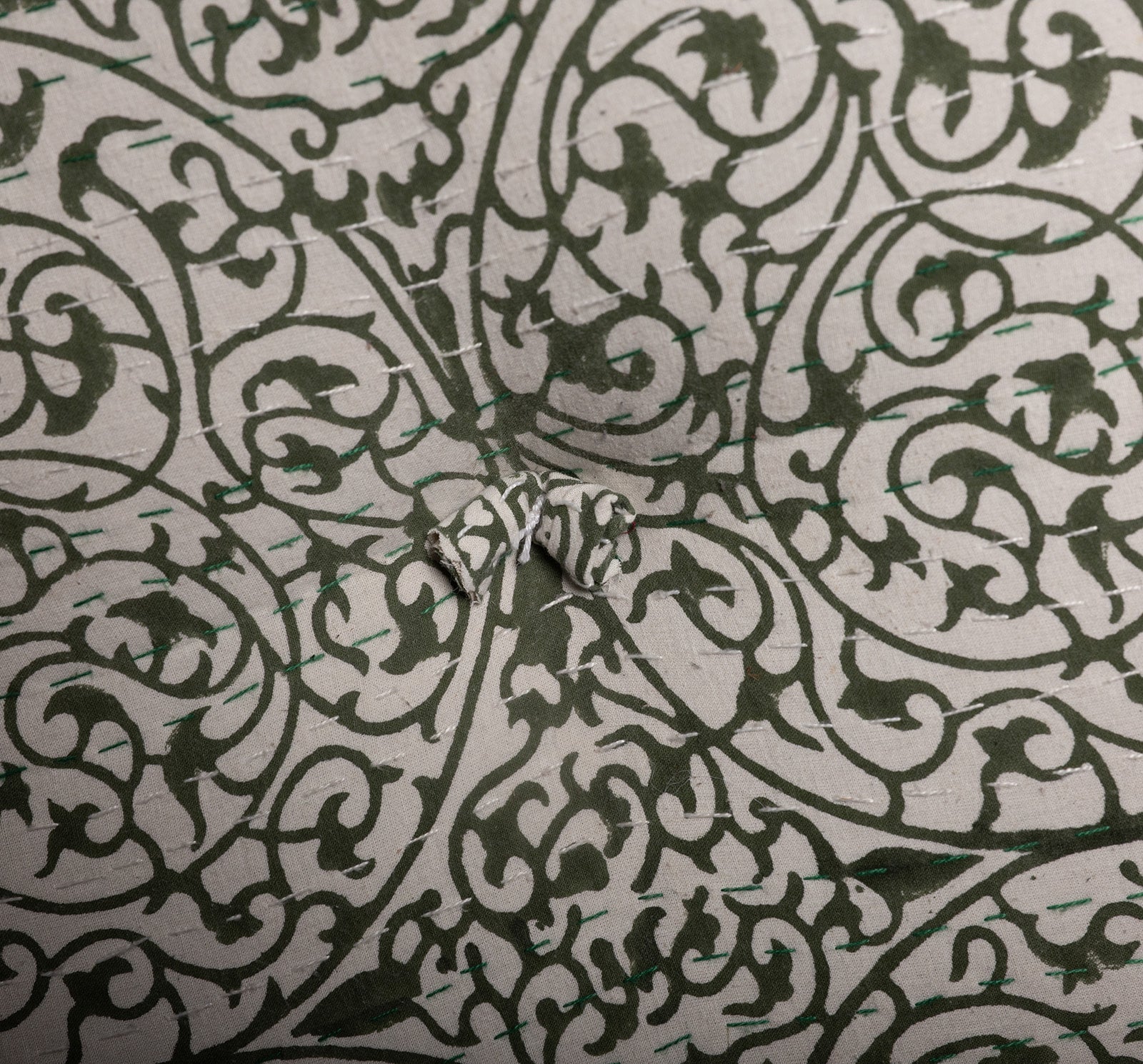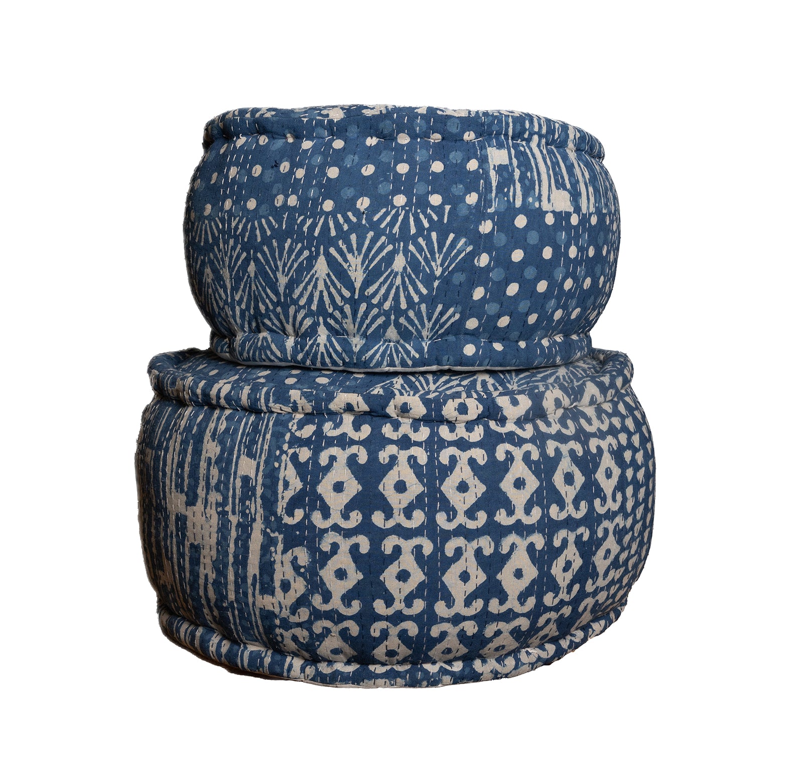 Covered in 100% cotton, screen printed or hand block printed in rich, characterful patterns, each piece is finished with beautiful kantha stitching, adding texture, detail and a subtle handcrafted charm. The gentle quilting effect enhances both durability and visual interest, giving every pouffe a warm, artisanal feel.