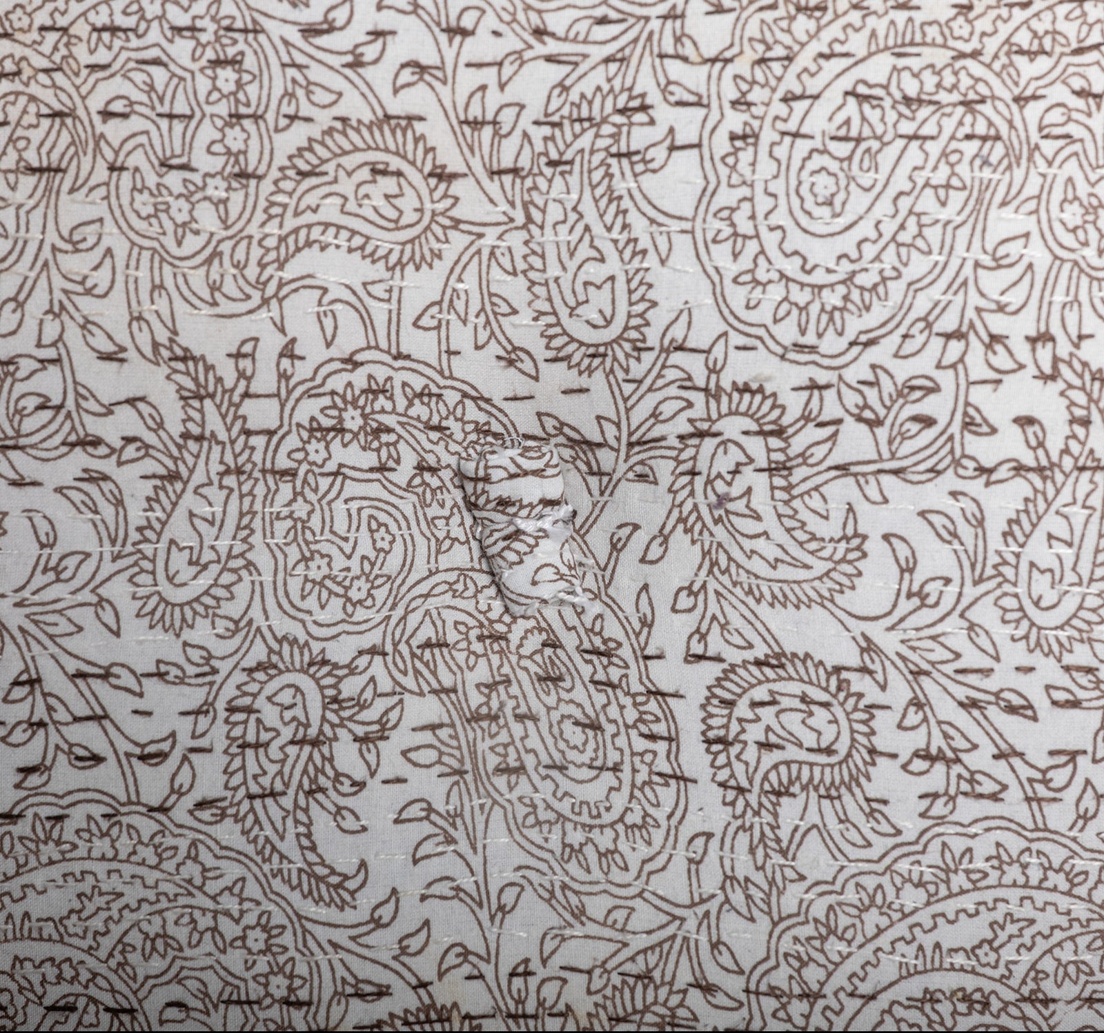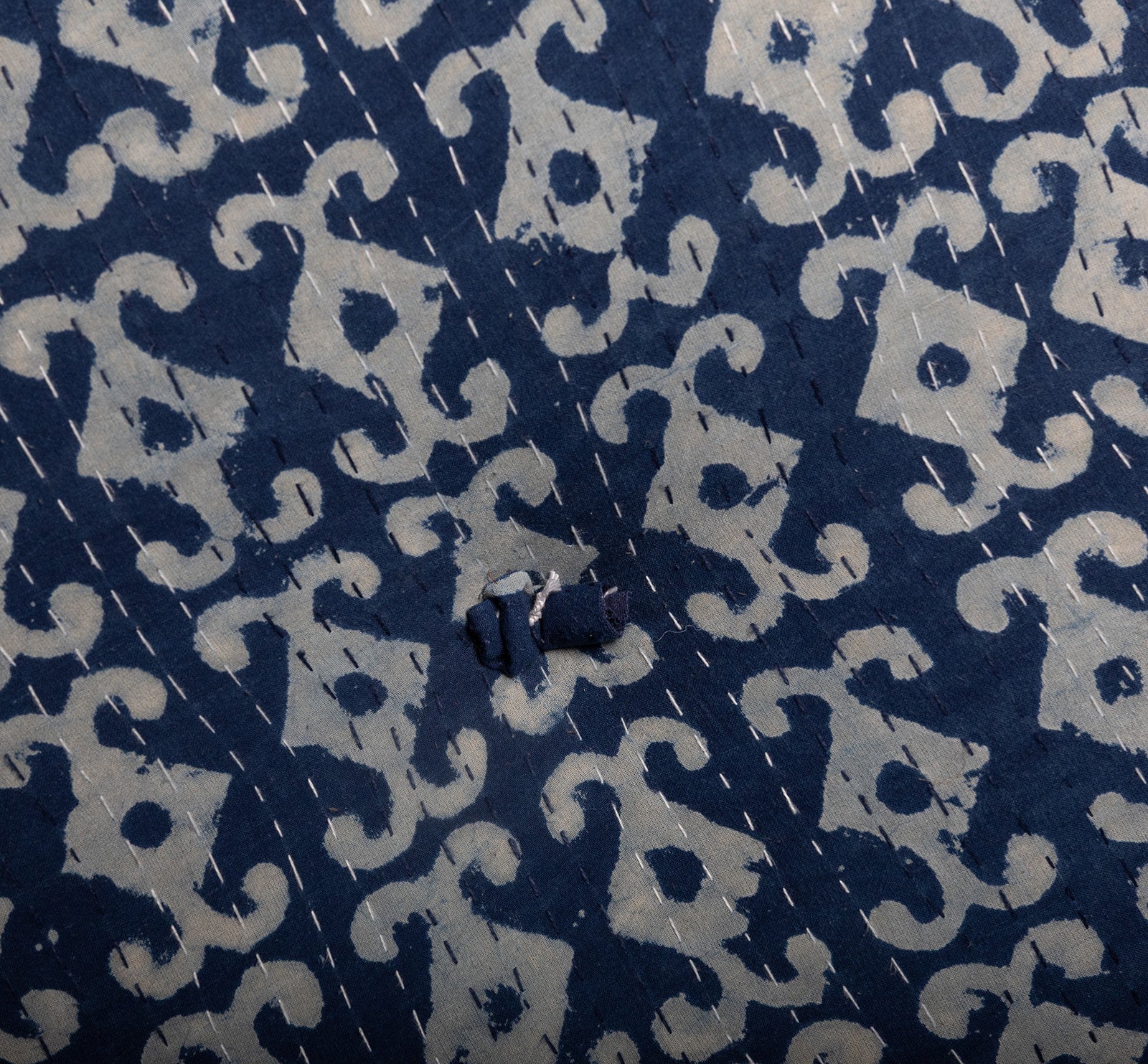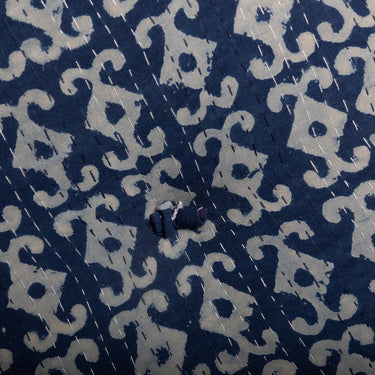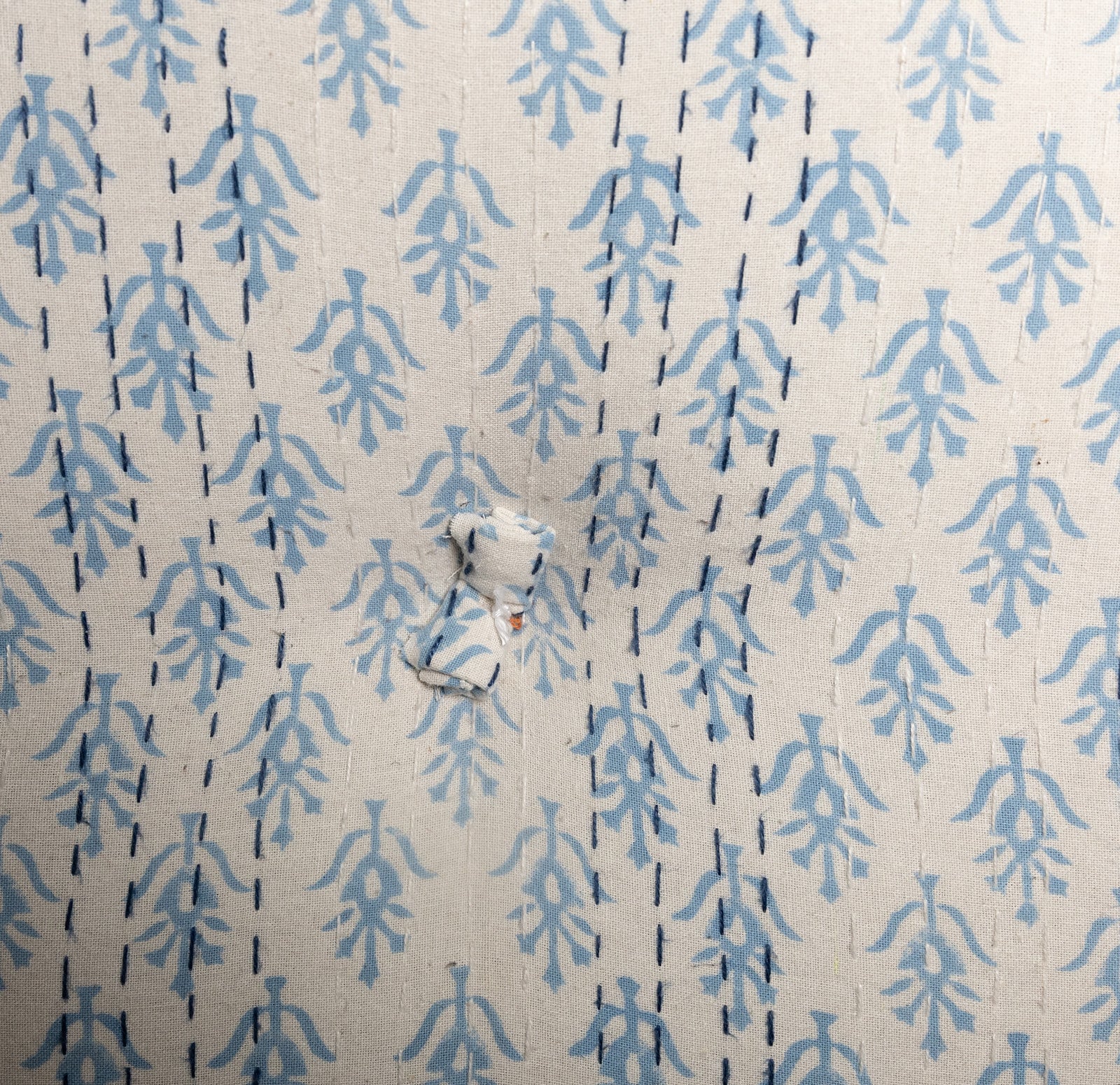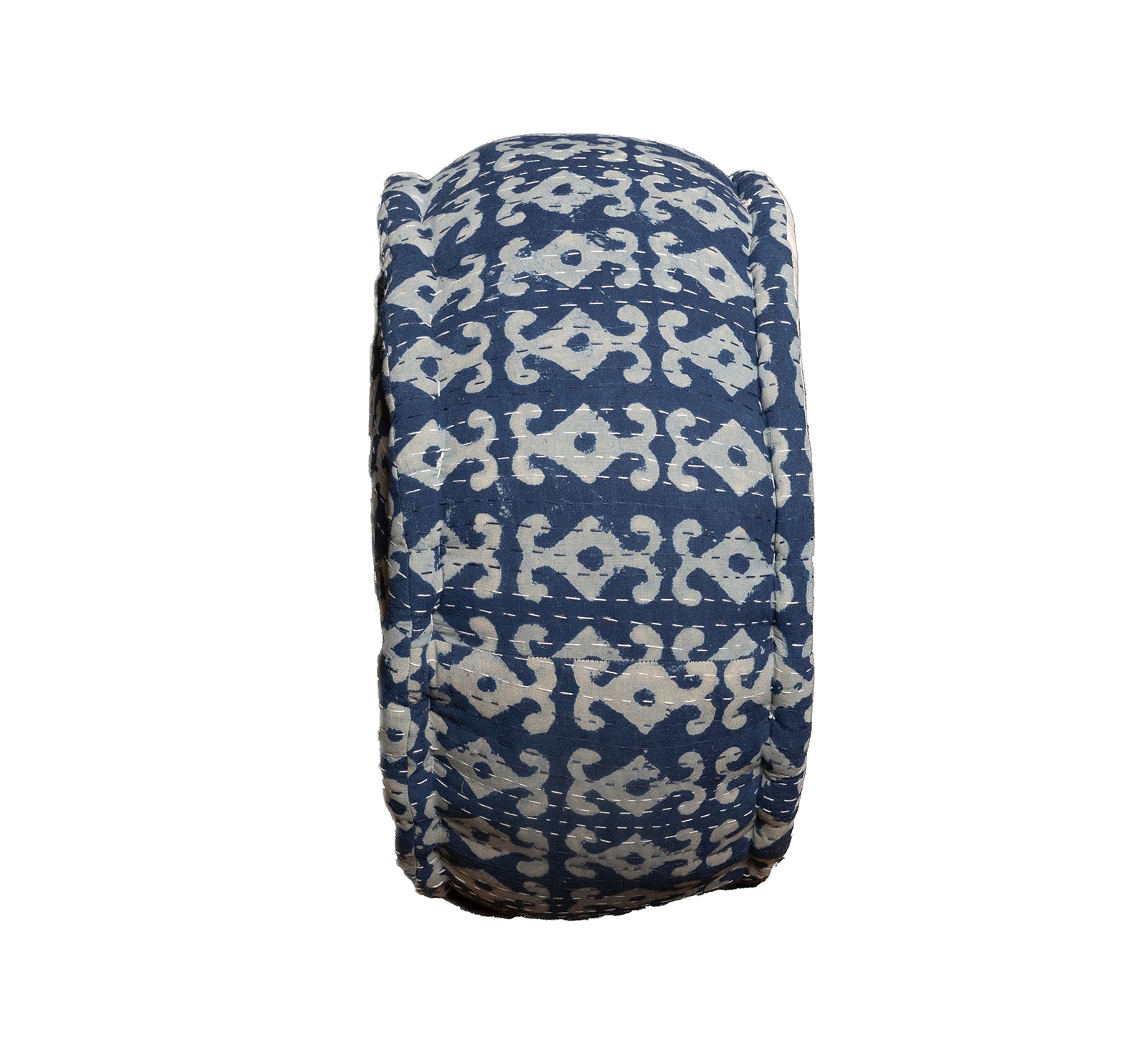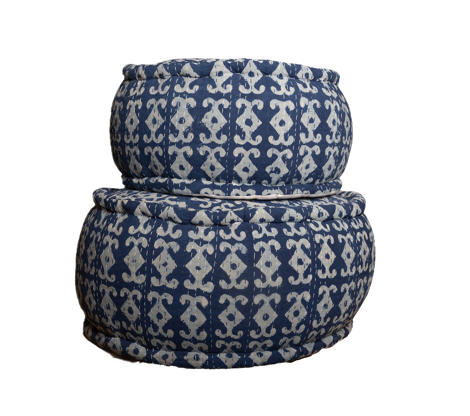 Covered in 100% cotton, screen printed or hand block printed in rich, characterful patterns, each piece is finished with beautiful kantha stitching, adding texture, detail and a subtle handcrafted charm. The gentle quilting effect enhances both durability and visual interest, giving every pouffe a warm, artisanal feel.