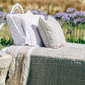 Designed with versatility in mind, every cushion features a contrasting print on the alternate side — giving you two beautiful looks in one. A neatly piped edge adds a refined finish, while the generous 50 x 50 cm size makes them perfect for sofas, beds, armchairs, and layered styling. Mix and match with our gorgeous blue & white quilts in sizes from cot to king or our range of multicolour matching tablecloths & napkins for the complete look.